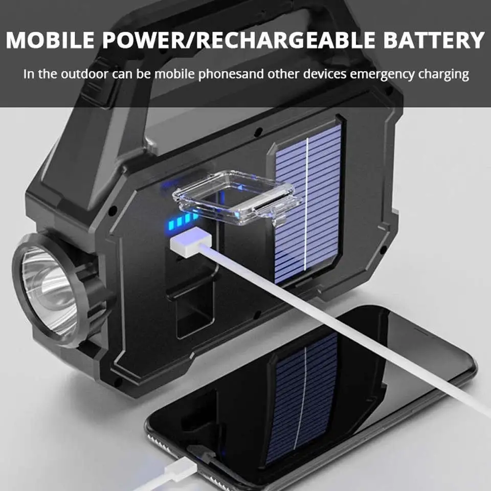 Ps-t95 30w Uzun Menzilli Solar Panelli Powerbank+ Usb Çıkış S.o.s Lu Ultra Güçlü Ledli Şarjlı Feneri