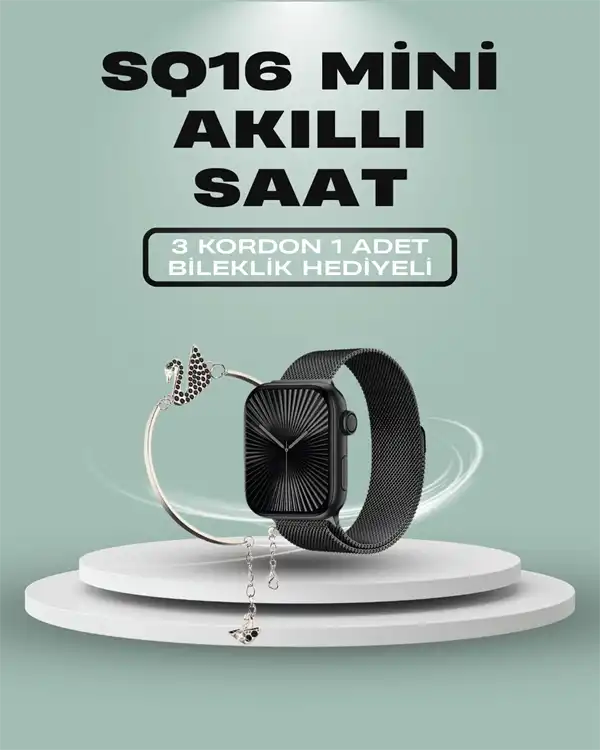 SQ-16 Mini Series 10 akıllı saat, şık tasarımı ve gelişmiş özellikleriyle öne çıkıyor. Hafif ve kompakt yapısı sayesinde her bileğe kolayca uyum sağlar. 3 farklı kordon (silikon, metal ve deri) ile tarzınıza uygun kombinler oluşturabilir, hediye bileklik ile görünümünüzü tamamlayabilirsiniz. Tüm telefonlarla uyumlu yapısıyla günlük kullanım için idealdir.