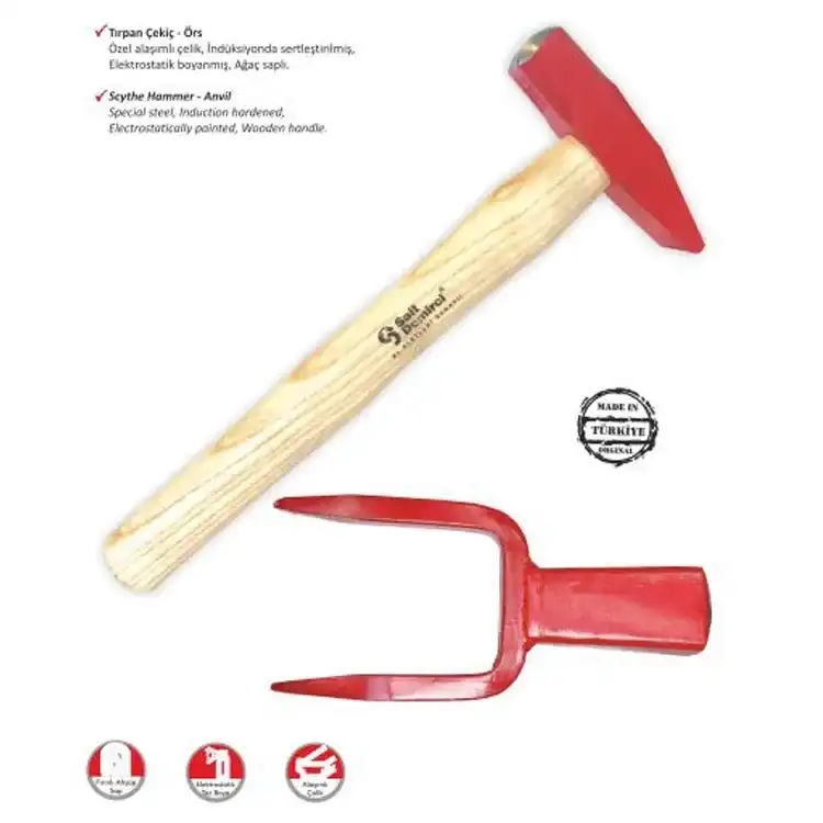 " Tırpan - Çekiç ve Örs Takımı ile her türlü işin üstesinden gelin Bahçenizi budayın, çitleri tamir edin veya küçük inşaat işlerinizi yapın. Bu takım, dayanıklılığı ve çok yönlülüğü sayesinde size zaman kazandırır ve işinizi kolaylaştırır. Türk malı olmasıyla da yerli üretimi desteklemiş olursunuz."
