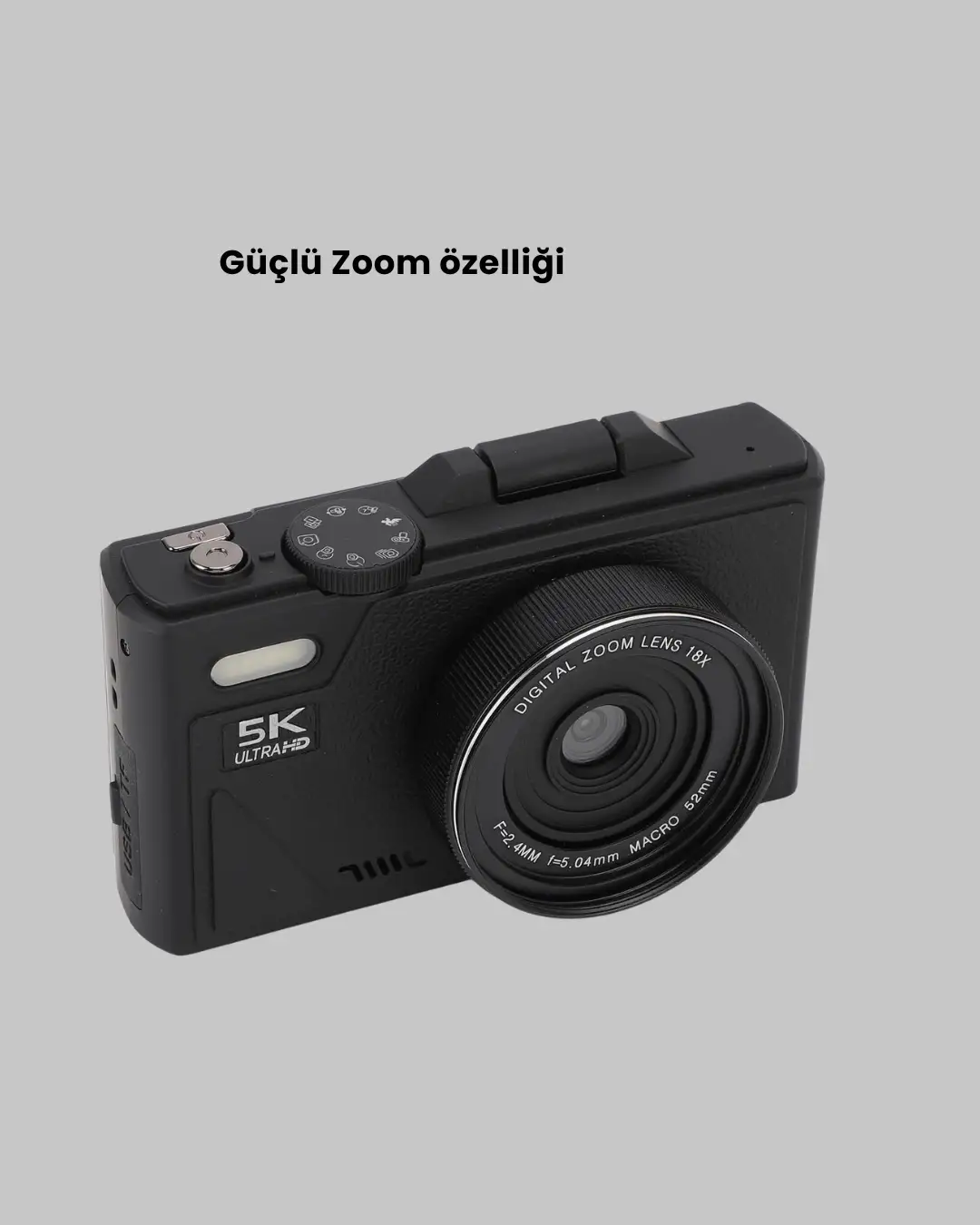 Bu dijital kamera; yüksek çözünürlük, profesyonel yakınlaştırma ve stabilizasyon özellikleri ile donatılmış çok yönlü bir çekim cihazıdır. 75MP sensörü sayesinde canlı renkler ve detaylı kareler oluşturur.5K video kayıt desteği, seyahat vlogları, etkinlik çekimleri ve sosyal medya içerikleri için ideal kalite sunar.18x optik zoom performansı uzaktaki detayları net şekilde kaydetmenize yardımcı olur. Zoom sırasında görüntü kalitesini koruyarak profesyonel sonuçlar verir.Çok eksenli stabilizasyon teknolojisi, hareket hâlindeyken bile görüntü titremesini azaltır. Düşük ışıklı ortamlarda bile net görüntüler sağlar.Gülümseme tanıma sistemi, doğal anları otomatik olarak yakalar. Selfie, aile fotoğrafları ve grup çekimlerinde büyük kolaylık sunar.Speedy Autofocus özelliği, sahnedeki nesnelere hızlıca odaklanır ve netliği garantiler.Hafif yapısı ve vintage dokunuşlu tasarımıyla hem şık hem de taşınabilir bir dijital kamera çözümüdür.