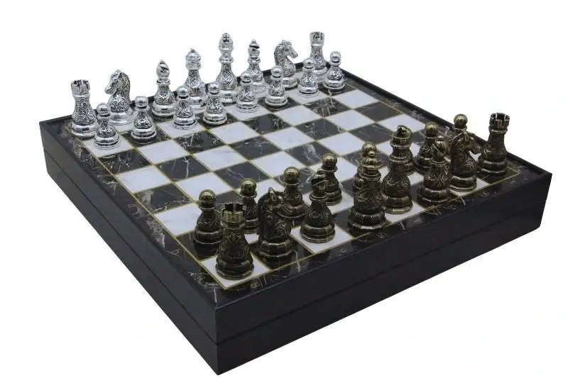Satranç Seti Köşeli Desenli Zamak Tablalı