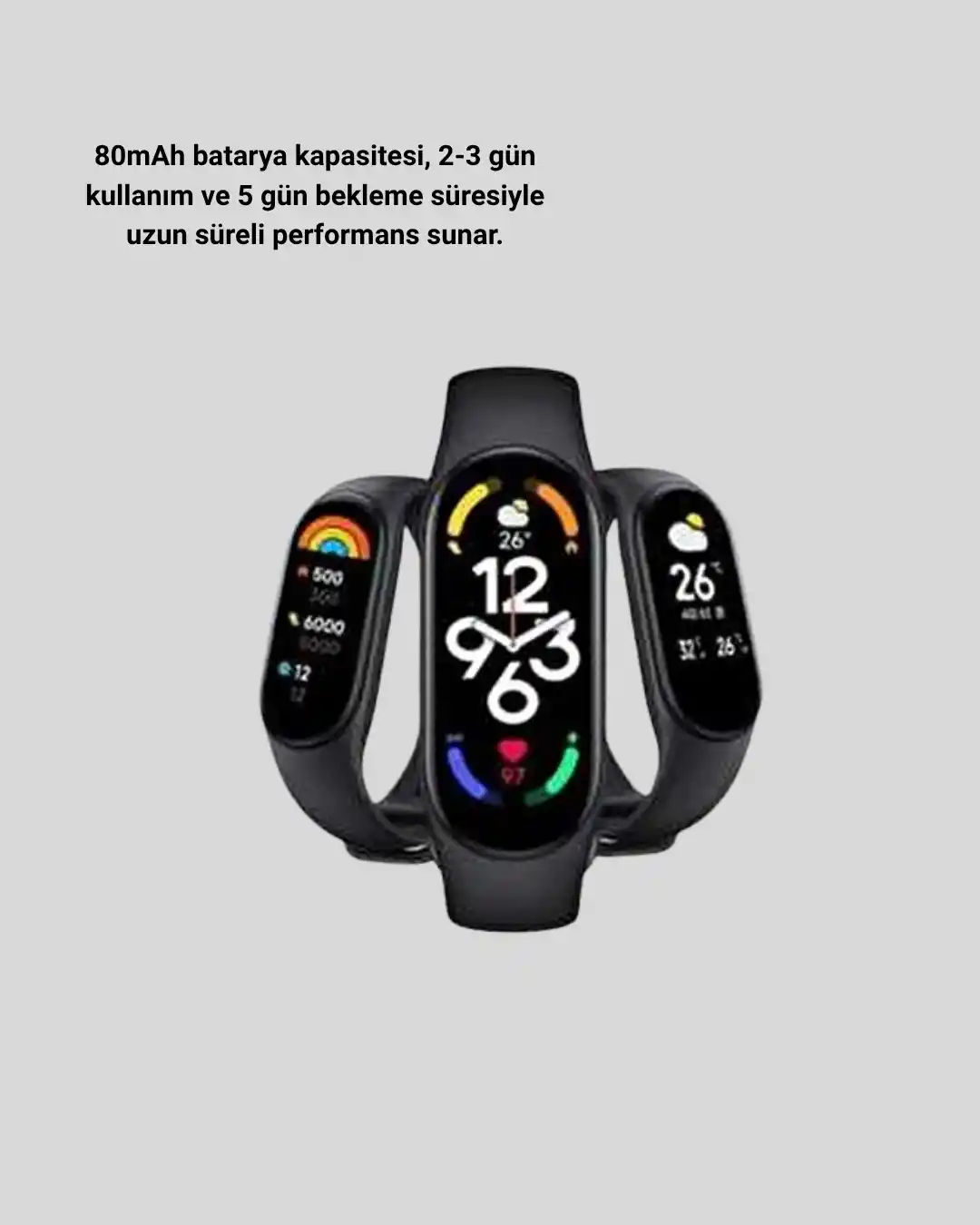 Günün her anında sizi motive eden Akıllı Spor Bilekliği, konforu, şıklığı ve teknolojiyi bir arada sunar.Sade ama modern tasarımıyla hem spor kombinlerinize hem de günlük kıyafetlerinize uyum sağlar.Adım sayar, kalori hesaplama ve mesafe ölçümü gibi özelliklerle günlük aktivite hedeflerinizi kolayca takip edebilirsiniz.Farklı spor modları sayesinde koşu, ip atlama veya mekik egzersizlerini daha bilinçli bir şekilde yapabilir, gelişiminizi adım adım izleyebilirsiniz.Kalp atış hızı ve kan basıncı ölçümü, gün boyunca sağlık durumunuzu kontrol etmenizi sağlar.Uyku izleme özelliği, dinlenme kalitenizi değerlendirerek daha düzenli bir uyku rutini oluşturmanıza yardımcı olur.Uzun süre hareketsiz kaldığınızda hareketsizlik hatırlatıcısı devreye girer ve sizi aktif olmaya teşvik eder.Akıllı bildirim desteği, gelen arama, mesaj ve sosyal medya bildirimlerini doğrudan bileğinizde görüntülemenizi sağlar.Bu sayede telefonunuza bakmadan bağlantıda kalabilirsiniz.Kullanımı son derece kolay olan USB şarj sistemi, hızlı ve pratik şarj imkânı sunar.80 mAh bataryası sayesinde 2-3 gün aktif kullanım ve 5 gün bekleme süresiyle uzun ömürlü performans sağlar.Akıllı Spor Bilekliği, aktif yaşam tarzını benimseyen herkes için şık, pratik ve fonksiyonel bir teknoloji harikasıdır.