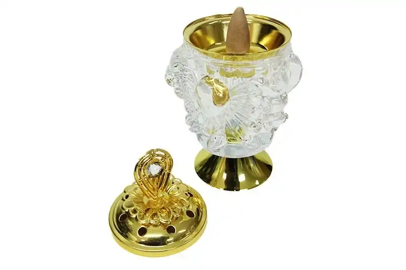 Buhurdanlık Cam Altın Dekorlu Kapak Ve Ayak