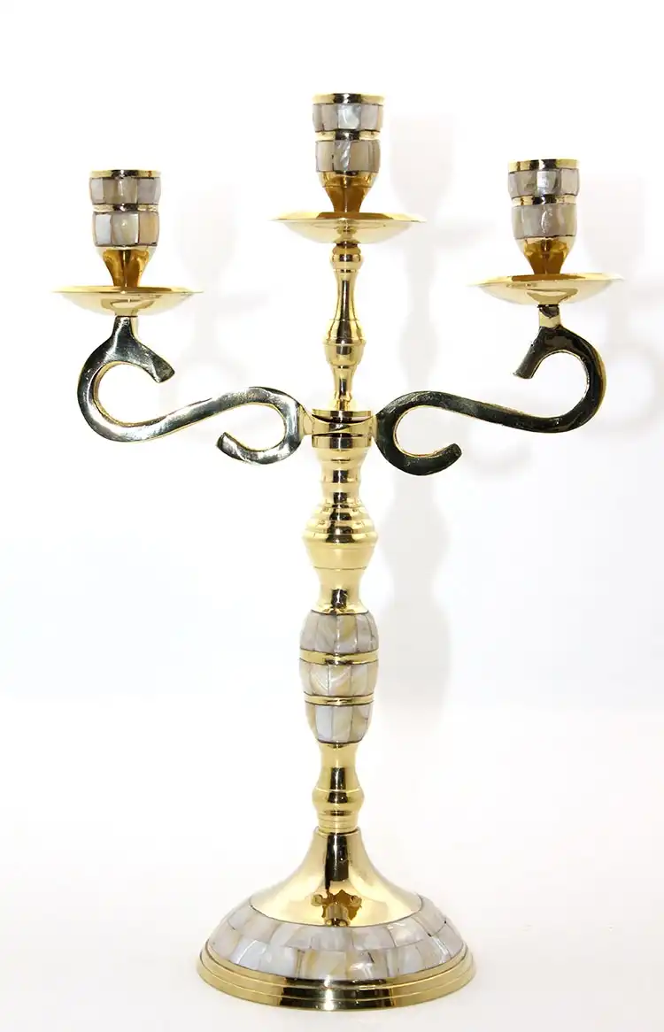 Pirinç Sedefli 3'lü Şamdan Model 3