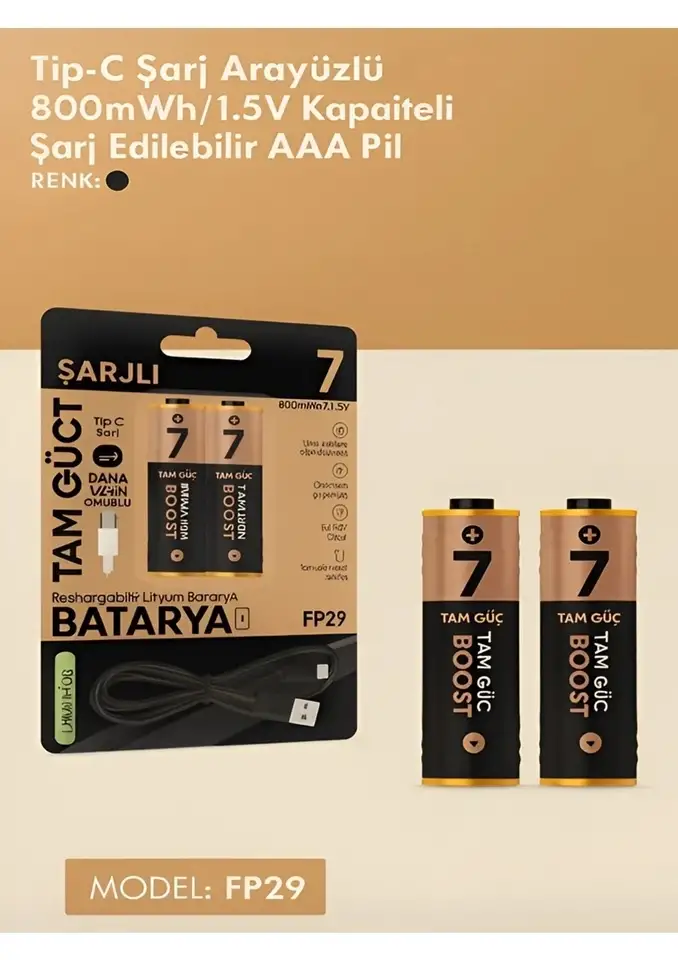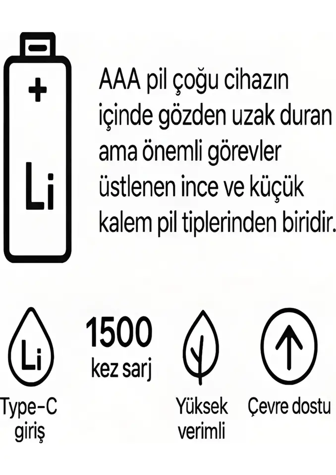 • Type-C Şarjlı 800MWH 1.5V Şarj Edilebilir 2’li AAA İnce Pil - Lityum Iyon Batarya