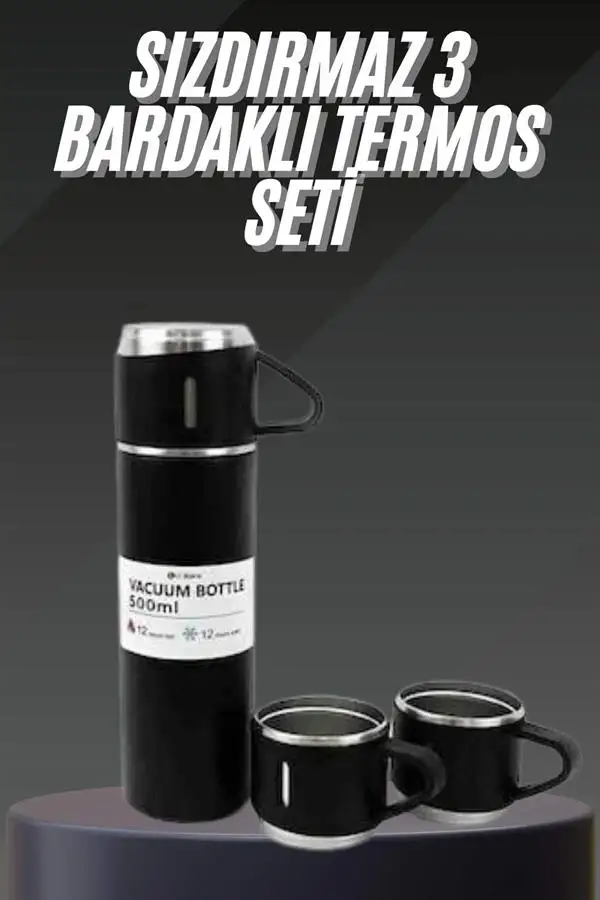 • Termos Seti Paslanmaz Çelik 3 Bardaklı Vakumlu Termos Set 500 Ml 12 Saate Kadar Isı Koruma
