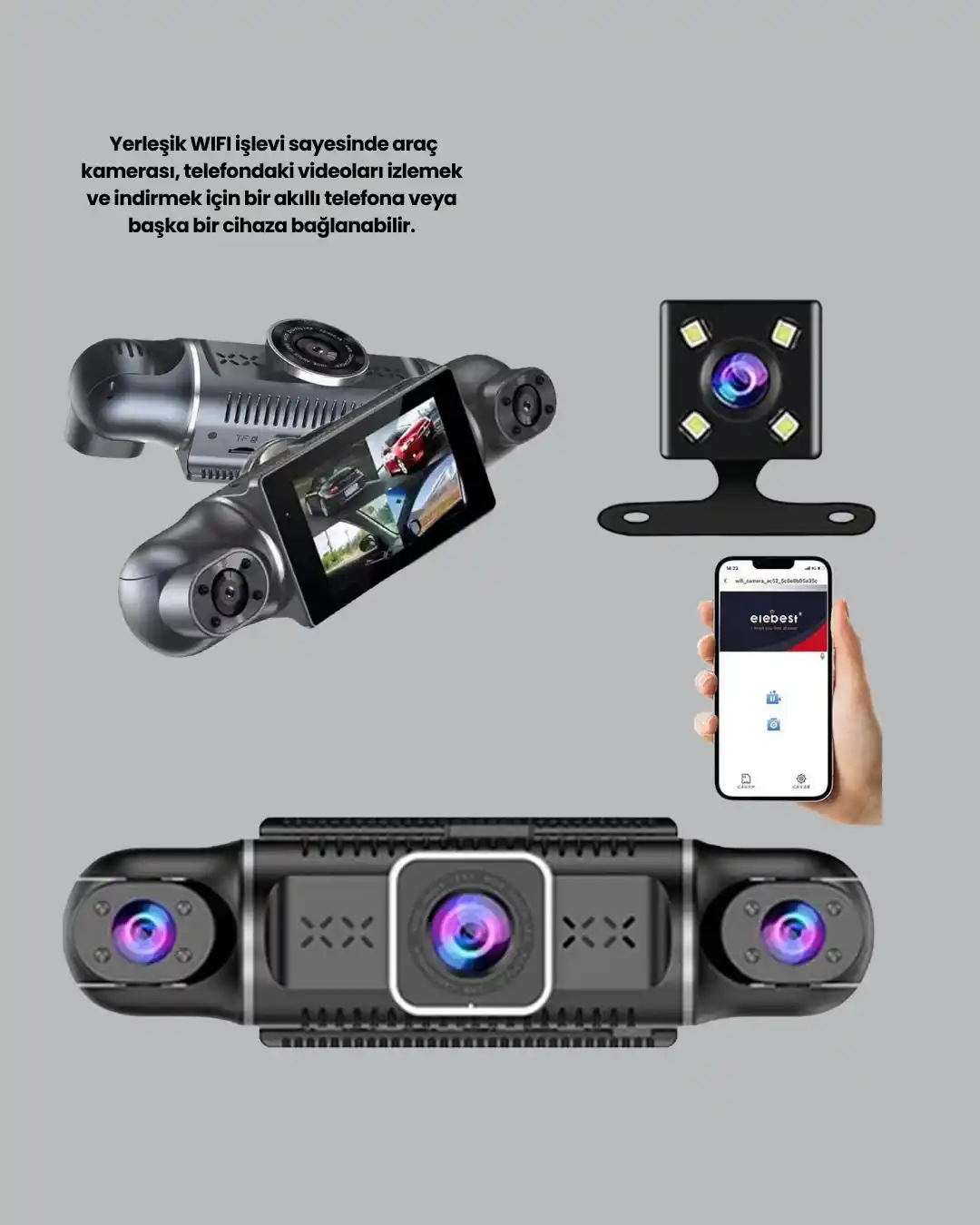 Bu gelişmiş araç kamerası sistemi, dört ayrı kamerayla aracınızın çevresini tamamen görüntüleyerek sürüş güvenliğini üst seviyeye taşır. 170° geniş açılı ana kamera, yolu geniş perspektifle kaydederken yan ve arka kameralar aracın etrafını tam anlamıyla izler. Bu özellik, özellikle park sırasında, dar sokaklarda ve şehir içi trafiğinde büyük avantaj sağlar.1080P Full HD görüntü kalitesi tüm detayların net şekilde kaydedilmesini sağlar. Plaka, yol çizgileri ve çevre objeleri yüksek çözünürlükte görüntülenir. Gelişmiş IR gece görüş sistemi sayesinde zifiri karanlıkta bile kaliteli kayıt yapabilir. Bu sayede gece saatlerinde olası kazalar, temaslar veya hırsızlık girişimleri kolayca belirlenebilir.Dahili GPS fonksiyonu, sürüş esnasında aracın konumunu, hızını ve rotasını otomatik kaydeder. Bu detaylar videoya entegre edilerek delil niteliği kazanır. Ticari araçlar, taksiler, kuryeler ve uzun yol şoförleri için bu özellik büyük önem taşır.WiFi bağlantısı, kullanıcıya büyük kolaylık sağlar. Telefonunuza bağlayarak canlı görüntü izleyebilir, dosyaları indirebilir ve ayarları anlık olarak değiştirebilirsiniz. Bu özellik, bilgisayara aktarma derdini ortadan kaldırarak kullanım kolaylığı sunar.Park izleme modu, araç çalışmıyor olsa bile çevre hareketlerini algılar. Bir çarpışma, dokunma veya hareket durumunda kayıt otomatik başlar. Böylece aracınız 7/24 korunmuş olur. G sensörü, anlık sarsıntıları algılayıp ilgili görüntüyü kilitler ve silinmesini engeller.Döngü kayıt teknolojisi, hafıza kartı dolduğunda eski kayıtların üzerine yenilerini ekleyerek kesintisiz çalışma sağlar. 32GB/64GB kart desteği ile uzun süre kayıt saklanabilir.Bu kamera sistemi; güvenlik, kayıt kalitesi, stabil çalışma ve kolay kullanım arayan kullanıcılar için ideal bir seçenektir.