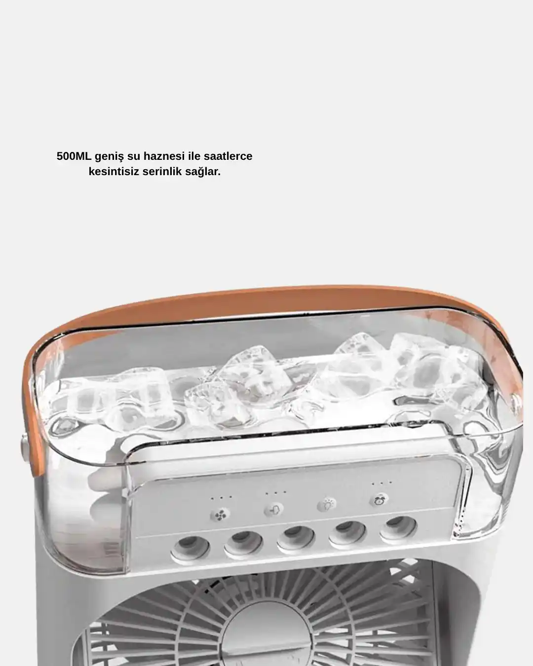 Hem serinletici hem nemlendirici hem de dekoratif bir çözüm arıyorsanız, bu 3’ü 1 arada mini klima fanı tam size göre!Hava soğutma, nemlendirme ve gece lambası işlevlerini bir arada sunar.3 farklı hız kademesi ve 3 püskürtme modu ile ortamın havasını tamamen sizin kontrolünüze bırakır.500 ml su haznesi, kesintisiz serinlik sağlar.USB bağlantısı, cihazı powerbank, bilgisayar veya araç çakmaklığı ile kolayca çalıştırmanıza olanak tanır.Ayrıca 7 renkli LED ışık efekti, bulunduğunuz ortama es bir atmosfer kazandırır.45–50 dB sessiz çalışma seviyesi, gece kullanımı için mükemmeldir.Kompakt ve taşınabilir tasarımı, evde, ofiste, kampta veya seyahatte kullanıma uygundur.Düşük enerji tüketimiyle çevre dostu olan bu cihaz, sıcak günlerde serinliği her yere taşır.