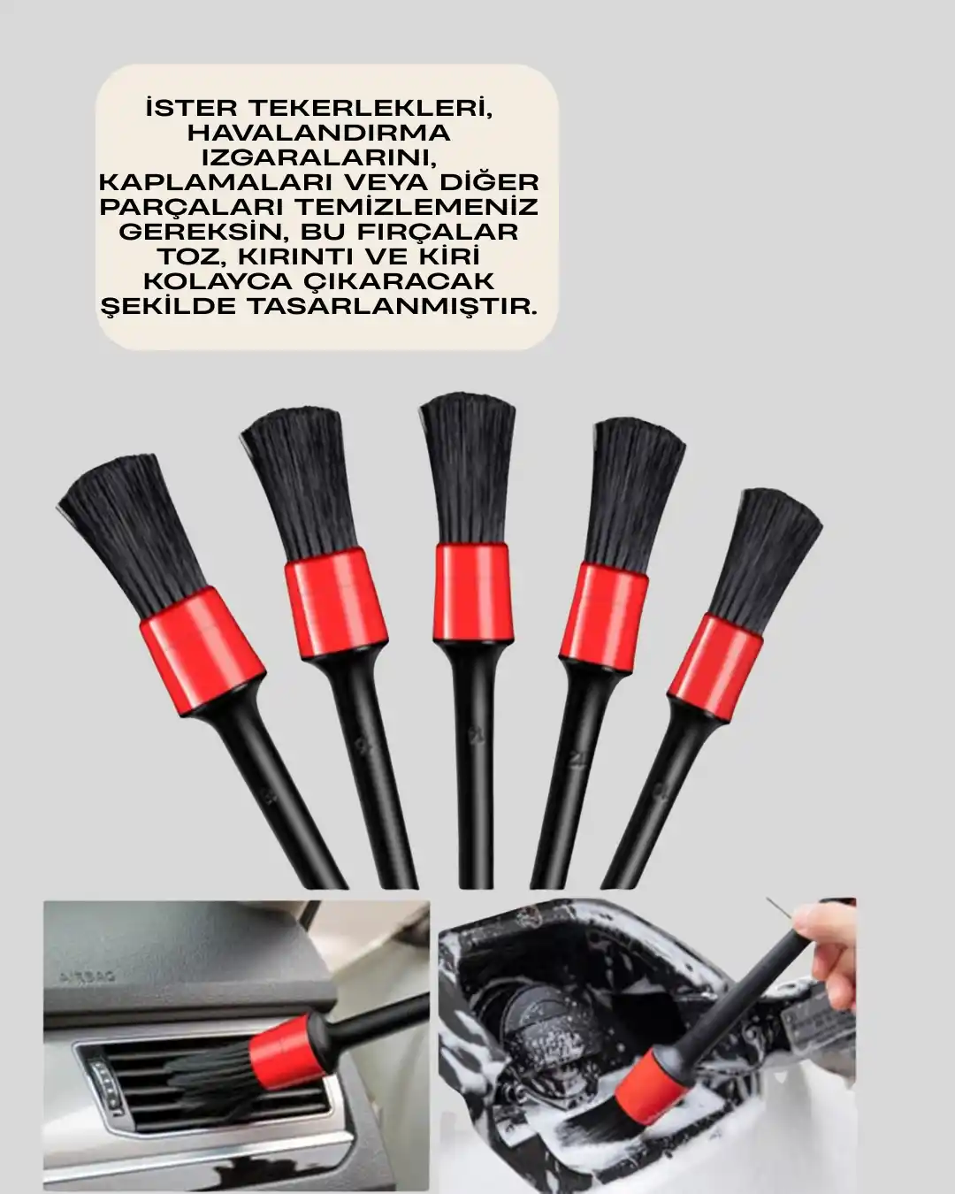 • 5 Boy Fırçalı Araba Temizlik Seti-Derin Temizlik Sağlayan Yumuşak Fırçalar