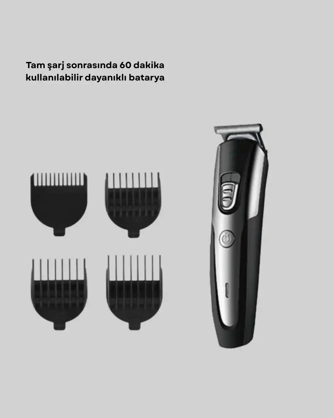 Kablosuz saç ve sakal kesme makinesi, kuaför kalitesini ev ortamında sunmak için geliştirilmiş profesyonel bir bakım ürünüdür. Hem saç kesimi hem sakal düzeltme hem de ense–favori şekillendirme için mükemmel performans sağlar. Güçlü motor yapısı, farklı saç yoğunluklarında bile tek seferde net kesim sunar.Sessiz çalışma teknolojisi sayesinde kullanım sırasında rahatsızlık vermez, düşük titreşimli kullanımıyla uzun süreli tıraşlarda bile konfor sağlar. Ergonomik tasarımı avuç içine tam oturur ve kesim sırasında maksimum kontrol sunar.Şarj edilebilir batarya sistemi 30–60 dakikalık çalışma süresiyle kesintisiz tıraş imkânı tanır. Kablosuz kullanımı sayesinde hareket kolaylığı sağlar ve her açıdan rahat tıraş imkânı sunar.Cihazla birlikte gelen 3, 6, 9 ve 12 mm uzunluk tarakları, istenilen kesim seviyesini elde etmeyi kolaylaştırır. Bu taraklar sayesinde hem kısa hem daha uzun modellerde eşit ve düzgün bir görünüm sağlanır.Islak kullanım özelliği duş sırasında bile güvenli kullanım sağlar. Otomatik kapanma fonksiyonu enerji tasarrufu yaparken güvenliği artırır. Temizlenebilir yapısı düzenli bakım için ideal olup uzun ömürlü kullanım imkânı verir.Sakal detaylandırma başlıkları, hassas çizgileri belirginleştirmek için özel olarak geliştirilmiştir. Favori, ense çizgisi ve kontür kesimlerinde maksimum netlik sunar.Lazer epilasyon öncesi kılları kısaltmak için de ideal bir cihazdır. Hem profesyoneller hem bireysel kullanıcılar için benzersiz bir performans sunar.