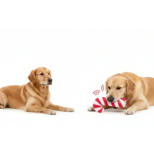 SESLİ BASTON ŞEKER OYUNCAKÜrün ÖzellikleriSesli Baston Şeker Oyuncak, sevimli şeker kamışı tasarımıyla hem köpeklerin dikkatini anında çeker hem de eğlenceli oyunlara ilham verir. Dayanıklı malzemesi sayesinde diş ve çene hareketlerine karşı yüksek direnç gösterir ve uzun süreli kullanım sunar. Sıkıldığında çıkan eğlenceli ses, köpeğinizin av içgüdüsünü harekete geçirerek oyunu daha heyecanlı hale getirir. Yumuşak ama sağlam yapısı sayesinde hem iç mekânda hem dış mekânda güvenle kullanılabilir. Hafif yapısı sayesinde köpeğiniz kolayca taşıyabilir, yakalama ve getirme oyunlarında keyifli vakit geçirir. Şık kırmızı-beyaz çizgili tasarımı, yılbaşı konseptine uyum sağlarken günlük kullanım için de ideal bir oyuncaktır. Toksik olmayan malzemeden üretildiği için patili dostunuzun sağlığına zararsızdır ve kolay temizlenebilir yüzeyi hijyenik bir kullanım sunar.Paket İçeriği1 adet sesli baston şeker oyuncak