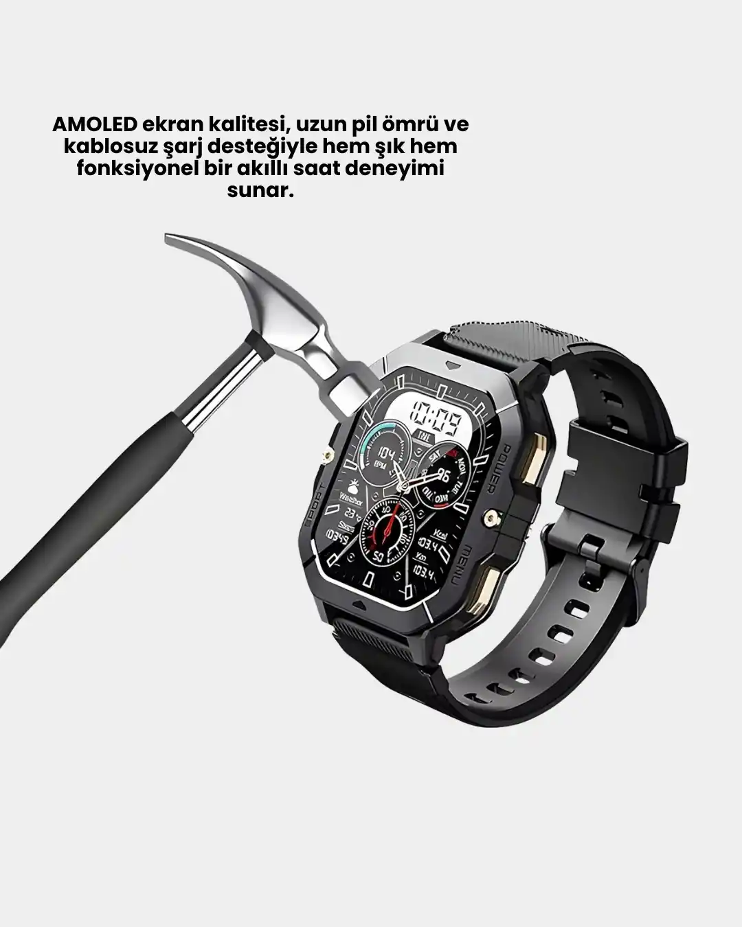Akıllı özellikleri ve sade tasarımı bir araya getiren bu saat, günlük yaşamda pratiklik sunar. Bildirim takibi, spor modları, müzik kontrolü ve zamanlayıcı gibi fonksiyonlar sayesinde hayatınızı daha düzenli hale getirir.Uzun pil ömrü ve kablosuz şarj desteği, kullanım konforunu artırır. Ultra ince ve hafif yapısı, gün boyu bilekte rahat bir deneyim sağlar. AMOLED ekranı ile hem es hem de işlevsel bir kullanım sunar.Teknoloji ve şıklığı bir arada isteyen kullanıcılar için güçlü bir alternatiftir.