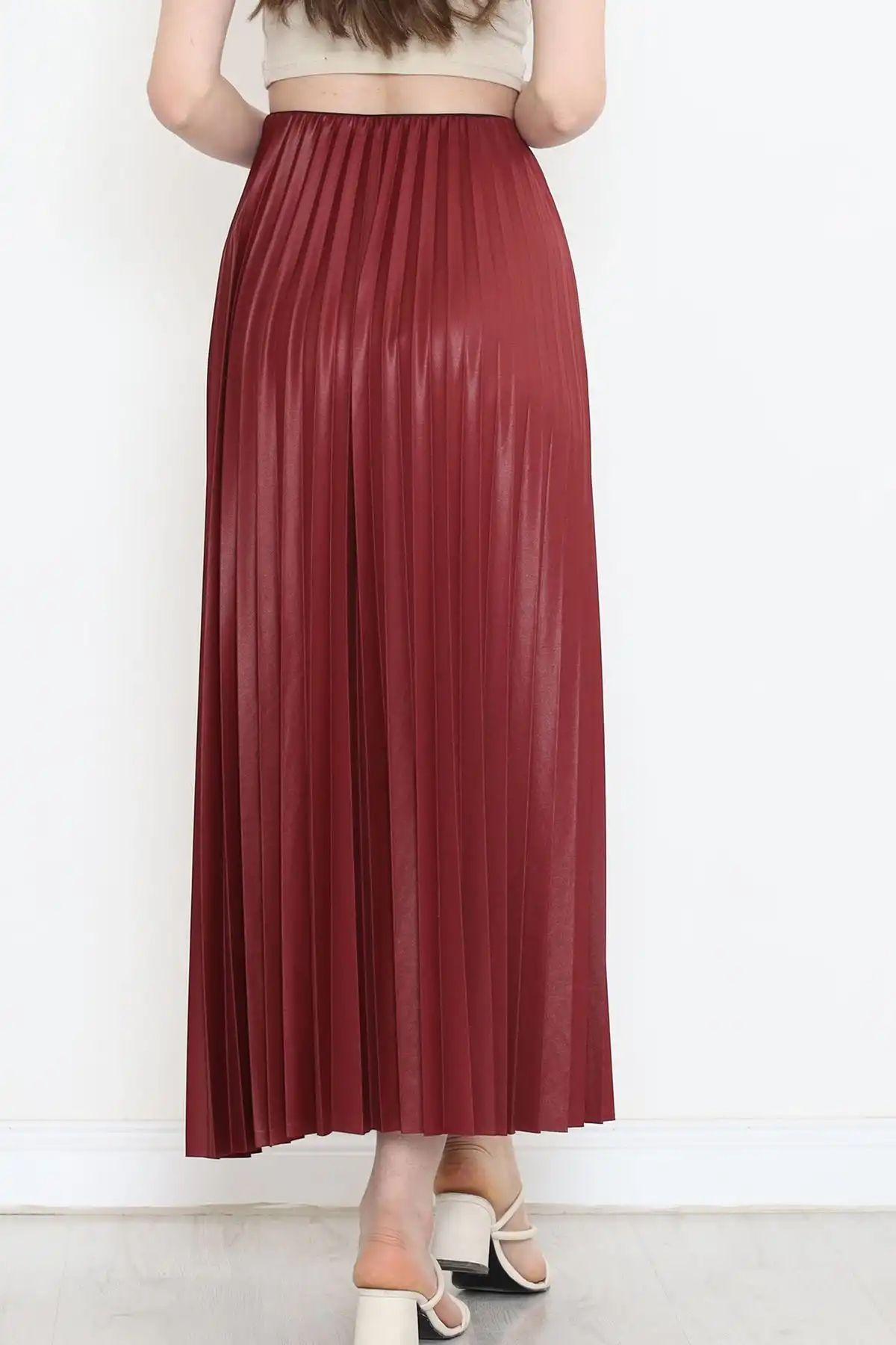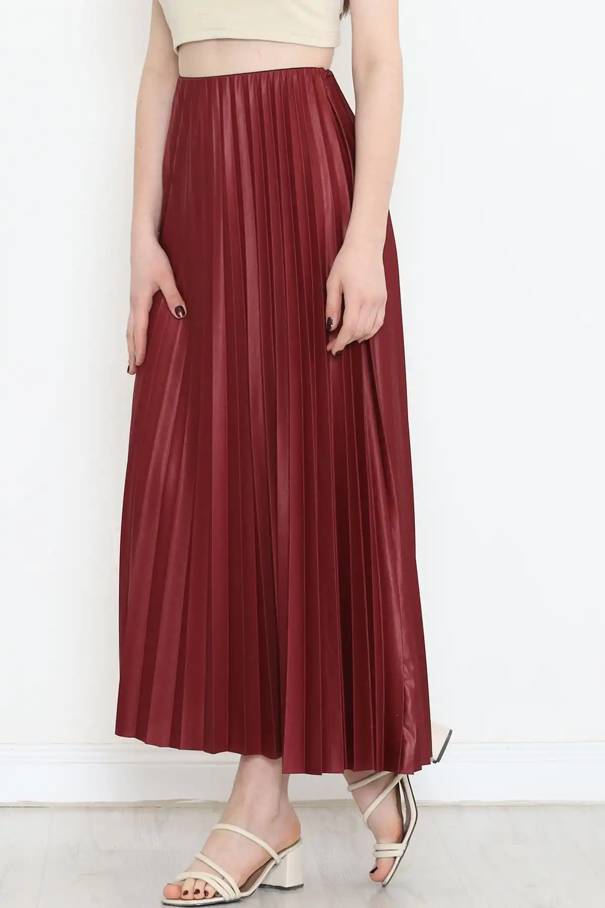 -Pileli detaylar, eteğe hareket ve hacim katarken aynı zamanda feminen bir dokunuş sağlar. Bu detaylar, eteğin tarzını ve çekiciliğini artırır, böylece her kombinde dikkat çekici bir seçenek haline gelir. Bordo rengi, sıcaklık ve zarafeti bir araya getirerek her mevsimde kullanılabilen bir renktir.