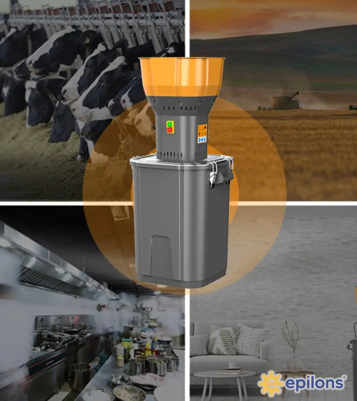Yüksek kaliteli paslanmaz çelik malzemeden üretilmiş olan Epilons Tahıl Öğütücü Değirmen, uzun ömürlü kullanım sağlar ve hijyenik bir şekilde yemlerinizi öğütmenize olanak tanır.